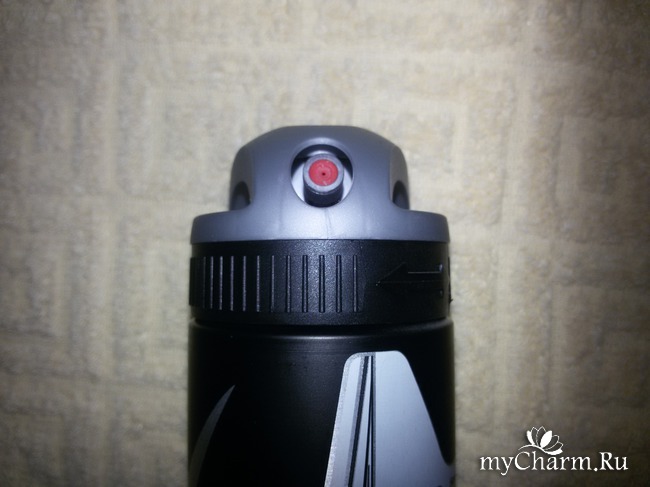 Неплохо продумана и верхняя часть с распылителем: она оснащена удобной защитой-блокировкой от случайного нажатия. Кнопка распылителя с виду очень тугая и массивная – явно не для женских, нежных пальчиков. Лично мне приходится приложить немного усилий, чтобы выдавить чуток спрея. В аналогичных женских дезодорантах это получается проще. Но мужа такой тугой «нажим» вполне устраивает.