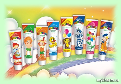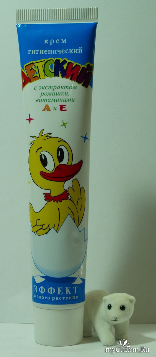 На тюбике изображен, уже знакомый по моим предыдущим обзорам вам, утенок. Миленький. ничего не скажешь. Собственно, с этого крема и началась моя любовь к средствам «Фитодоктор», и в частности к тем, на которых есть этот забавный утенок. А вообще, выбор детского крема у этой компании разнообразный. И оформление кремов очень яркое и симпатичное. Любимые герои сказок и известных мультфильмов привлекают внимание, и сразу становится понятно, что крем, действительно, предназначен для детей. Ну как не купить такие кремы с такими веселыми героями, которые знакомы нам самим с нашего детства.