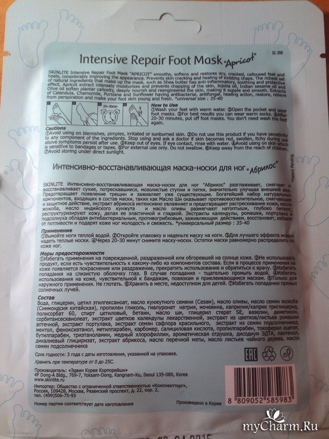 Мне понравилась данная маска для ног. Могу смело рекомендовать ее к покупке, как дополнительное средство для ухода за кожей ног.