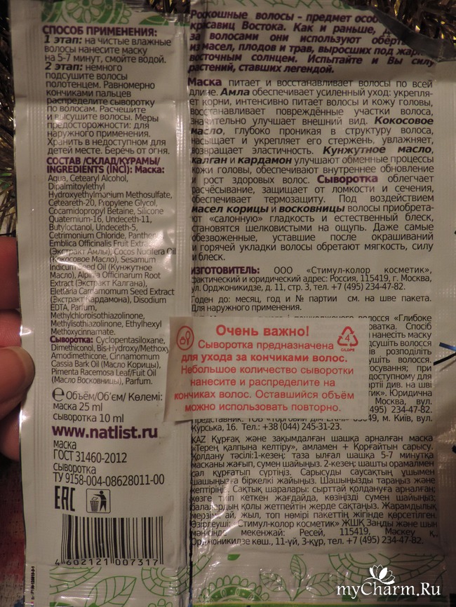 Итак, герой сегодняшнего обзора - "Маска для сухих и поврежденные волос с амлой + защитная сыворотка, глубокое восстановление" из серии "Легенды Востока" от НатураЛист.