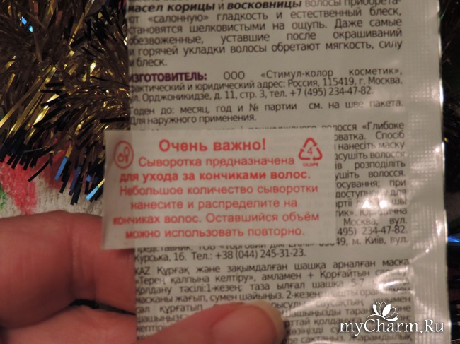 Того объема, что содержится в пакетике-саше, мне хватает на 4-5 применений. Как я уже говорила, я ее перелила в баночку и потом ежедневно наносила на кончики колос, за что волосы мне отвечали благодарностью, имея красивый, ухоженный вид.