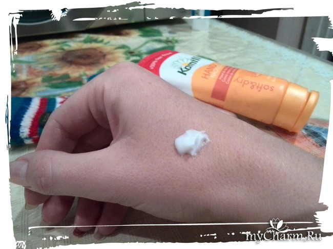 Производитель пишет, что крем впитывается моментально. Не скажу, что это так, но действительно очень быстро. После себя ощущения пленки на руках не оставляет.