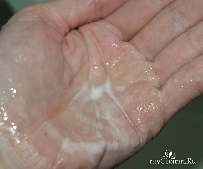 Гель практически не пенится, он скорее создает кремообразную консистенцию, которую я наношу на лицо и затем смываю теплой водой.