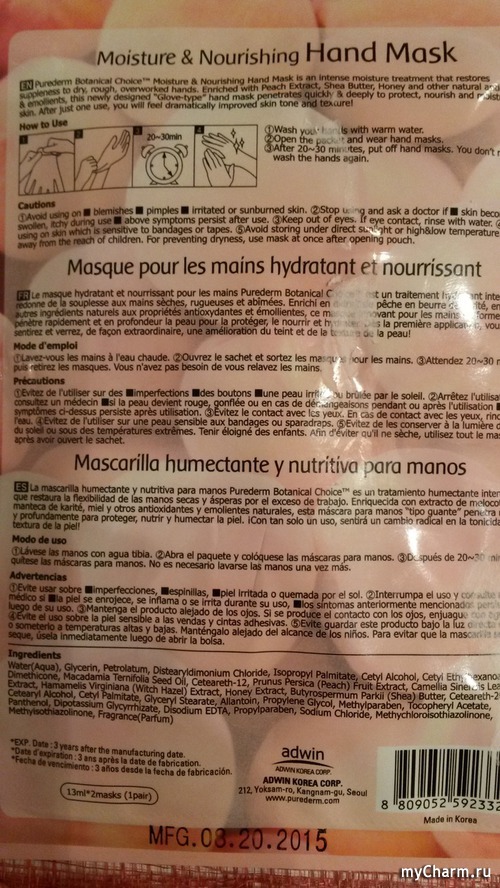 Моем, скрабим ручки и погружаем их в драгоценную влагу, доверимся волшебным перчаткам.