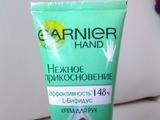 Среди всего огромного ассортимента кремов для рук у меня есть свои фавориты, которыми я чаще всего пользуюсь. Но иногда бывают исключения: или самой хочется чего-то новенького, или муж приносит не тот крем, который просили. Именно из-за моего драгоценного у меня появился крем для рук «Нежное прикосновение» от Garnier. Свой выбор мне муж объяснил «супер-пупер» свойствами этого крема.