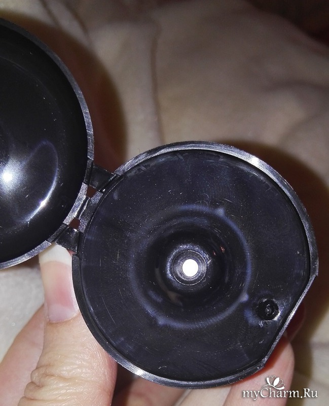 Это вытянутый глянцевый тюбик черного цвета с ярким цветочком.