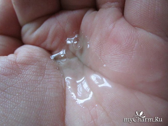 Средство легкого голубоватого оттенка, жидкое, но в меру.