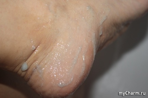 Такой перечень выглядит очень вкусно и ароматно. Настоящий десерт для дамских ножек и пальчиков! А в компании с ментолом эта композиция будет ярче ощущаться и тонизировать кожу. Ментол сразу чувствуешь, как только надрезаешь пакетик. Свежий и задорный аромат окутывает стопы и ароматизирует, дарит нежную прохладу и мигом снимает усталость. А еще в составе скраба имеются частицы пемзы и полимерные микрогранулы. Именно они выполняют самую главную работу - отшелушивают, и снимают ороговевшую кожу, и деликатно полируют. Эффект вполне заметный и на вид, и на ощупь.