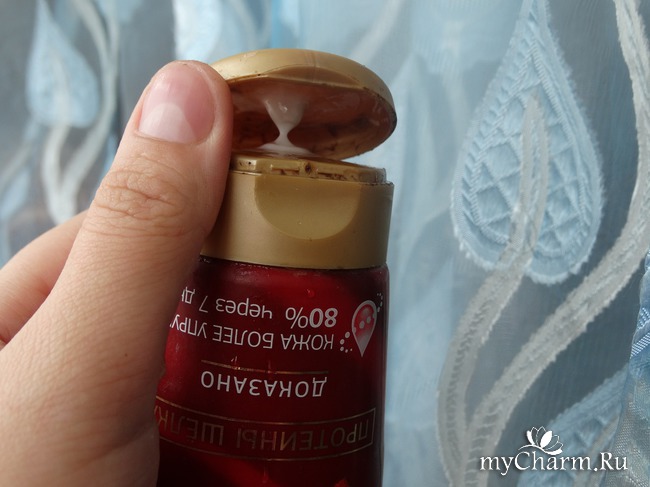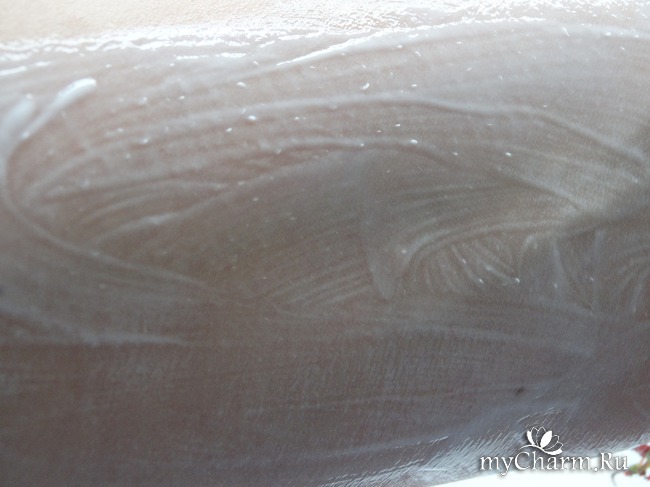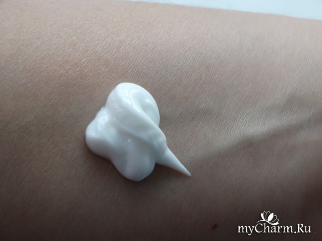 Данное средство белого цвета, мягкое и приятное на ощупь. При этом, что интересно, несмотря на то, что это молочко - оно не течёт! Уж как только я не вертела рукой, делая фото для обзора - оно продолжало оставаться на руке.