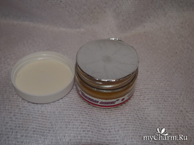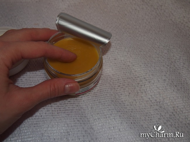В составе масла оливы и виноградной косточки, масляный экстракт ромашки, который заживляет, защищает и борется с воспалениями, пчелиный воск, также удачный компонент, он и создает такую плотную консистенцию средства, также питает кожу, "запечатывая" ее от внешнего воздействия. Для аромата и ухода было добавлено эфирное масло жасмина, но в аромате оно совсем не чувствуется.