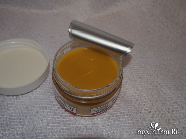 Консистенция крем-масла довольно плотная, а в зимнее время понадобится дополнительное приспособление для "добычи" крема из баночки. Производитель советует использовать шпатель, но можно использовать и одноразовые лопаточки для нанесения крема. Но мне все равно удобно пользоваться пальчиками. Лучше, конечно, масло немного растопить перед применением, в прохладной квартире масло положите на батарею на несколько минут.