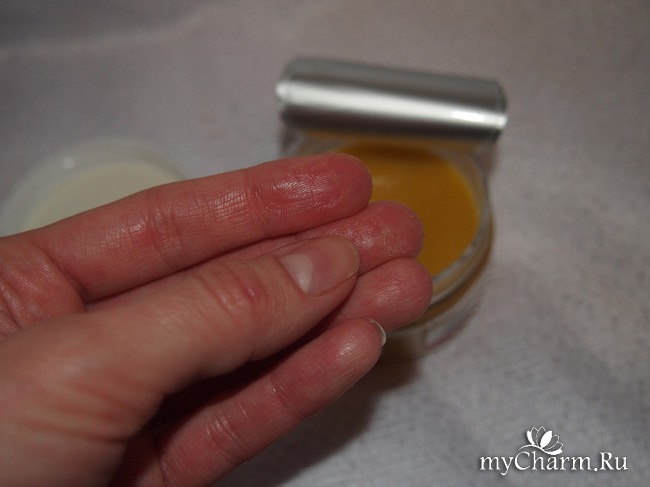 - Крем твердый по консистенции, но тает от теплоты рук и легко распределяется;