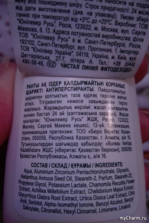 myCharm.Ru Нежный ФИТОдезодорант от Чистой Линии