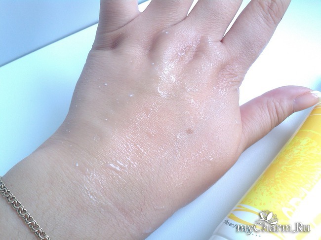 Пилинг хорошо распределяется по коже, подсыхая начинает скатываться в белые катышки, в процессе этого и происходит очищение слоев кожи.
