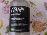 Если бы мне тогда кто-нибудь сказал, что самым лучшим окажется порошковый дезодорант, я бы никогда не поверила. Казалось бы, что хорошего? Наносить непривычно, ребенок может раскрутить и рассыпать и т. д. Но жизнь все расставляет по своим местам и лучший дезодорант – это действительно порошковый под названием «Гринч» от Lush.