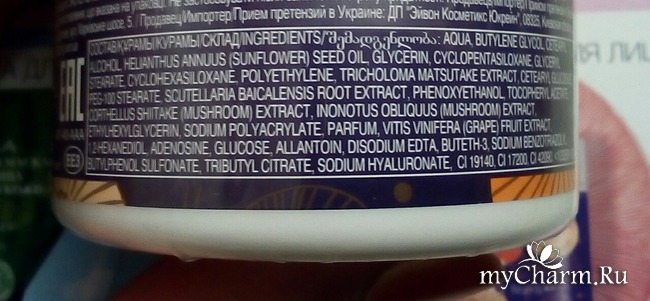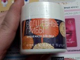 Тут же на этикетке нарисованы подобия шляпок грибочков бежевого и оранжевого цвета. Очень симпатичное оформление, поднимающее настроение. Грибы нарисованы потому, что в состав самой маски производитель включил экстракты грибов мацутаке, шиитаке и чаги.