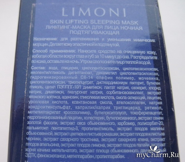 Конечно, всех интересует, что же я заказала? То, что люблю больше всего- улиточные средства и ночную масочку. Сегодня о ночной маске Limoni Skin Lifting Sleeping Mask – ее я опробовала первой.