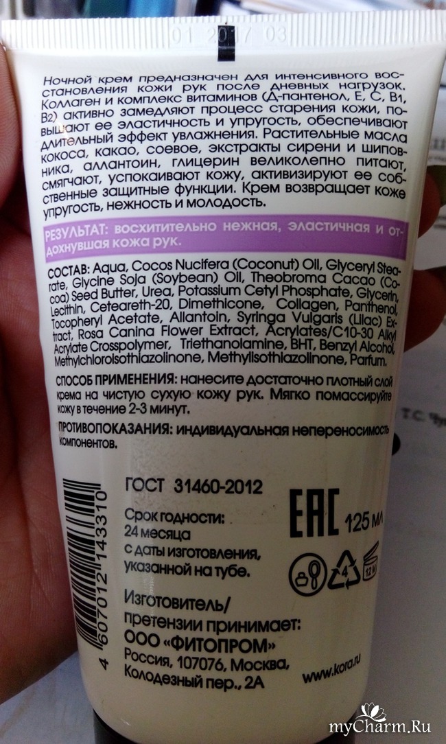 Объём, да ещё при такой «смешной» цене в 75 рублей, прямо восхищает: 125 мл. А ещё я вдруг сразу заметила, что этот ночной крем по ГОСТу сделан. Редкое это нынче явления, скажу я вам.