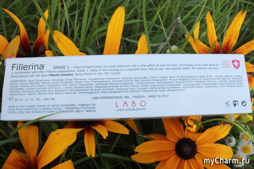 Несколько месяцев назад я рассказывала о креме для губ и век "Fillerina" швейцарской торговой марки LABO Cosprophar Suisse. Он значительно улучшил состояние моей кожи вокруг глаз, разгладил мелкие мимические морщинки, и мне сразу же захотелось попробовать другие кремы данного производителя. Так в моей уходовой косметичке появился ночной крем "Fillerina" для ежедневного применения.