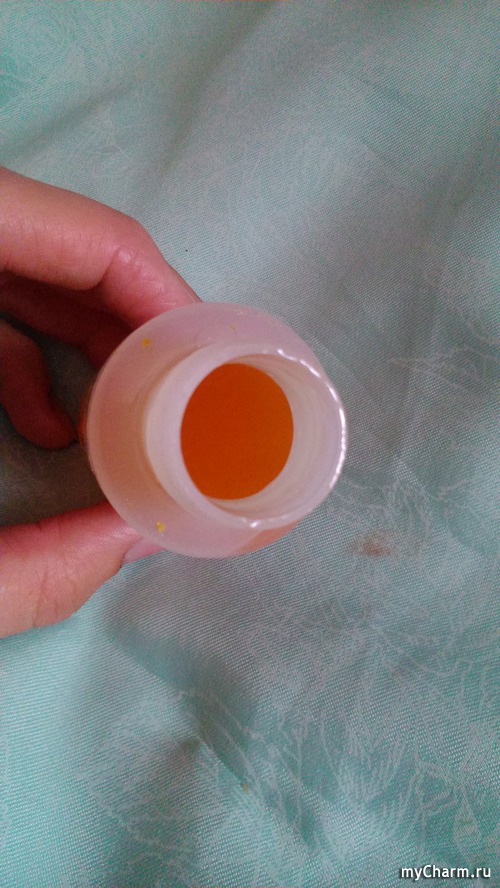 Как я уже сказала, из-за широкого горлышка, есть большая вероятность вылить средство, больше, чем понадобится. Поэтому с большой аккуратностью смачиваем ватный диск маслом. Именно это - "Облепиховое " - имеет оранжевый цвет и, соответственно, маслянистую структуру)