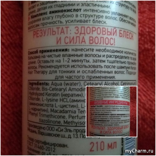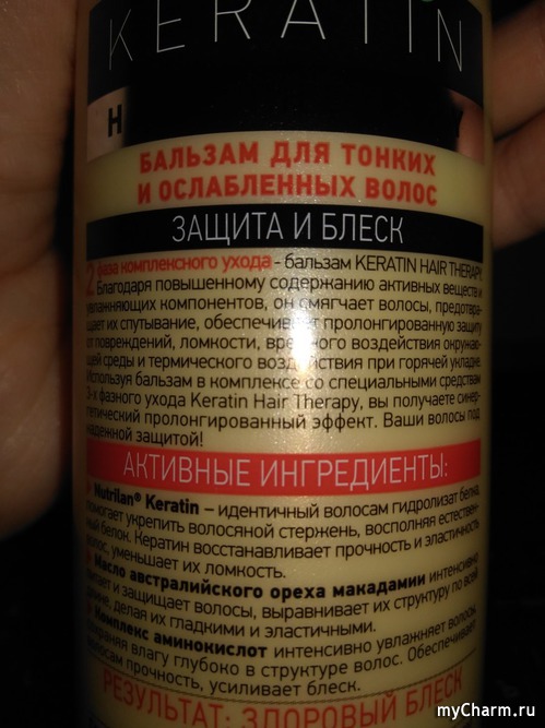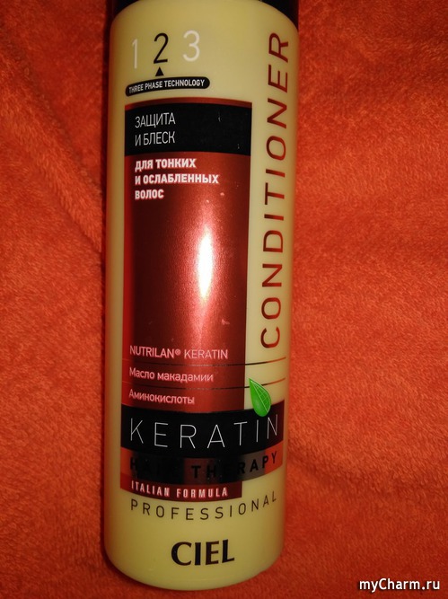Мой выбор пал на серию "Защита и блеск" для тонких и ослабленных волос Keratin Hair Therapy by Ciel. Производитель, российская компания Сиель сотрудничает со многими иностранными компаниями для создания идеального продукта, в частности формула бальзама итальянская.