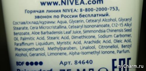 Во-вторых, крем содержит активные природные компоненты - экстракт алоэ вера и масло жожоба, которые отлично питают кожу, заживляет трещинки и ранки, восстанавливает кожу рук, интенсивно увлажняя ее. Эти компоненты широко применяются в косметических средствах и их польза несомненно знакома многим.