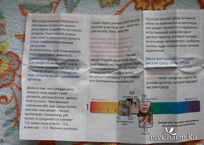 Также на буклете была очень полезная информация о pH нежной и деликатной зоны, и что влияет на её изменение.