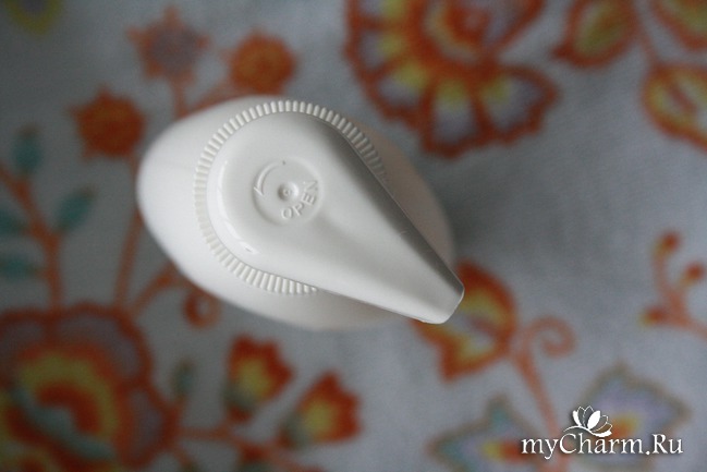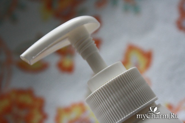 Бутылочка имеет очень удобный помповый дозатор, который отлично работает, и выдает необходимое количество средства. На дозаторе имеется изображение, которое сообщает, что при повороте в сторону дозатор можно закрыть, и можно будет не переживать, что средство разольётся. Повернув в обратную сторону, дозатор откроется.