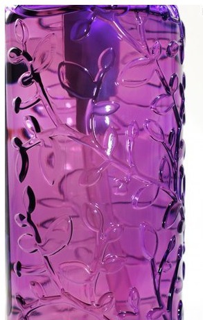 Флакон из мягкого пластика насыщенно-фиолетового оттенка с дозатором фиолетового цвета. Интерьер ванной комнаты с этим флаконом приобретает некий шарм, благодаря своему эпатажному дизайну. Полюбуйтесь этим рисунком из листьев, похожим на узор объемного кружевного полотна. Разве это не прелесть?