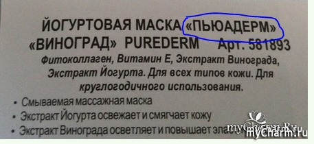 У меня была такая масочка. Мне показалось, она пахнет виноградом сорта "изабелла". У нас такой рос на даче. Очень ароматный, винный. Мне тоже эта масочка очень понравилась. Вообще, люблю все эти маски Пуредерм. Каждую открываю, как сюрприз.