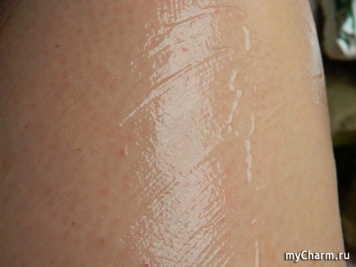 Перехожу к использованию. Сначала принимаю душ, потом тщательно массажирую проблемные зоны со скрабом с морской солью от «Аравии», смываю его, вытираюсь. Затем наношу обёртывание. По коже распределяется оно легко, благодаря своей маслянистой гелеобразной текстуре. Пахнет изумительно!