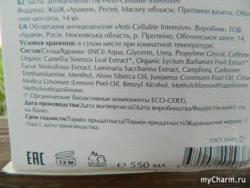 На картонной коробочке представлена вся информация о средстве. Нас, конечно, интересует, что входит в состав обёртывания.