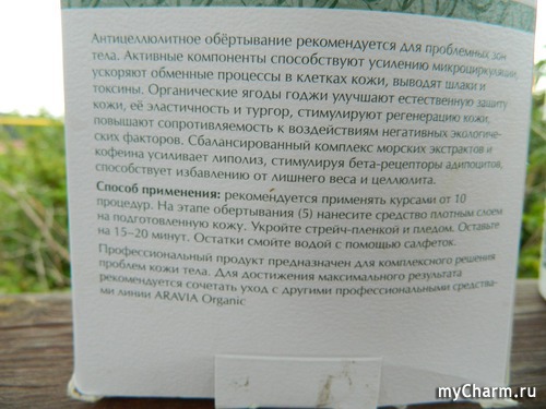 При регулярном проведении процедур (производитель рекомендует сделать не менее десяти) кожа заметно меняется. Я пока провела пять процедур (делаю через день), но результат уже очевиден: кожа заметно подтянулась, стала ровной, эластичной, исчезли небольшие «ямочки», видневшиеся ранее на бёдрах. А самое главное – за это время в бёдрах ушло три сантиметра! Конечно, это заслуга не только косметического средства, ибо правильное питание и физические нагрузки тоже никто не отменял, но антицеллюлитное обёртывание Anti-cellulite intensive от «Аравии» однозначно работает. Вот что значит, профессиональная косметика!