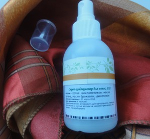 Косметолог посоветовала мне выбрать финишное средство по уходу за волосами, содержащее силиконы, бальзам или несмываемый спрей, сказав, что силиконы в конце ухода за волосами совсем неплохи, они помогают выдерживать выпрямление, завивку, предохраняют от солнца и мороза, так как создают на волосах эластичную пленку, которая как бы обволакивает волос. Выбирая такое средство, я остановилась на спрее-кондиционере SOS от Оликосметикс.