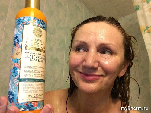 Производители этого бальзама обещают придать волосам максимальный объем, блеск и густоту, защитить волосы при горячей укладке. Обещают оживить и приподнять волосы от корней, не утяжеляя их. После нескольких применений облепихового бальзама я убедилась в том, что в этом красивом описании все правда. Еще один дополнительный эффект, который я обнаружила - волосы очень хорошо укладываются без всяких пенок. То есть я просто использую бигуди на пару часов, накручивая их на сухие волосы, или укладываю феном с расческой или плойкой, и волны или кудри держатся хорошо и достаточное время. Это меня немного удивило в хорошем смысле:)