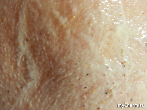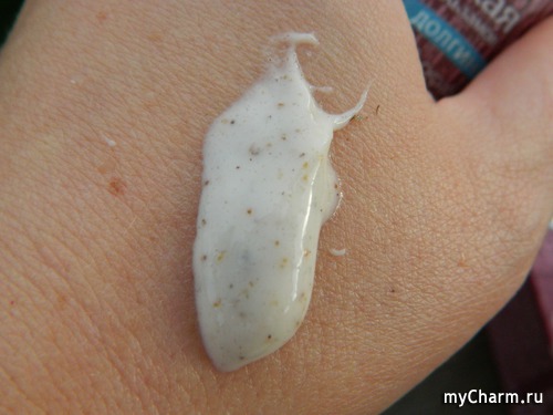 Между нами: процедура приятная – скраб наносится легко и пахнет просто волшебно! Сразу же возникает ощущения холодка – начинает работать ментол. Частицы скраба довольно ощутимы, но они действую мягко и бережно, кожу не царапают, а наоборот, успокаивают. Парадокс? Возможно, но это – факт.
