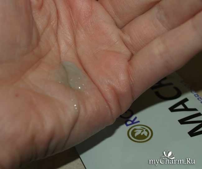 На чистую кожу необходимо нанести маску из первой части пакетика. Собственно я так и сделала. Маска представляет собой густой гель, липковатый на ощупь, но с приятным ароматом.