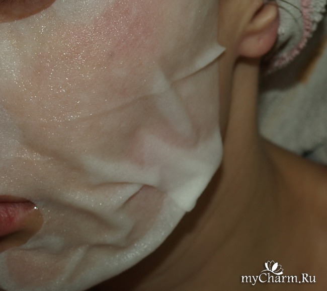 Сама маска довольно хорошо прилегала к коже. Разве что прорези для глаз сделаны слишком близко и возле носа маска все время отлеплялась. И снизу немного морщинилась. После снятия этой маски необходимо умыться теплой водой.