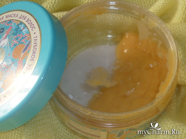 Сама маска плотной консистенции, насыщенного оранжевого цвета, и, как и вся облепиховая серия, имеет приятный аромат. Как уже говорила, маской пользуюсь 9 месяцев, причем набираю я ее просто рукой - но она не испортилась, никаких этому "следов" нет: