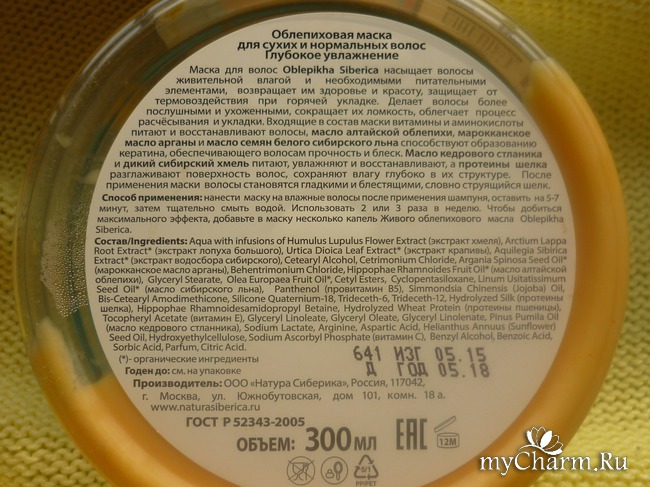 По составу: собственно поэтому я и снимаю одну звезду маске - любимый "финт ушами" Сиберики написать о кол-ве полезных (натуральных) компонентов не в количественном порядке, а хитро указать их вначале под общую гребенку с водой. Но это не главное, сразу после этого списка идут... идут силиконы! Вот так рушится все волшебство этой маски, к сожалению, производитель не смог сделать "чуда" без них...