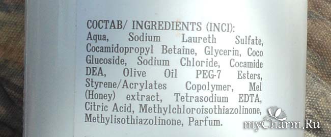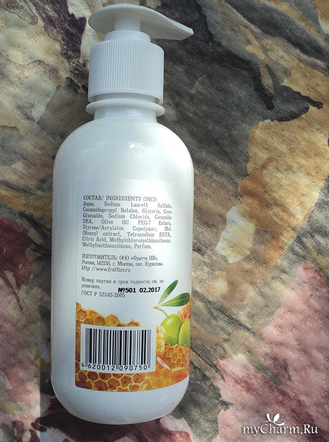 Запах не сильный, средство пахнет, скорее, приятной косметической отдушкой, а не медом или оливой. Этих долгожданных нот нет в этом аромате. Одно хорошо – запах не сильный, еле уловимый.