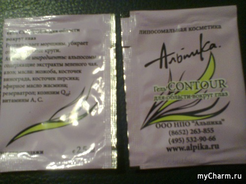 Вот и я наконец-то решилась написать его. С «Альпикой» я впервые познакомилась на сайте мой шарм, когда искала себе сыворотку для лица. Производитель меня заинтересовал и, начитавшись положительных отзывов, я тоже решила попользоваться данной косметикой. При покупке заинтересовавшей меня сыворотки я получила пробнички разных средств, об одном из которых хочу сегодня вам рассказать. Это гель контур для области вокруг глаз.