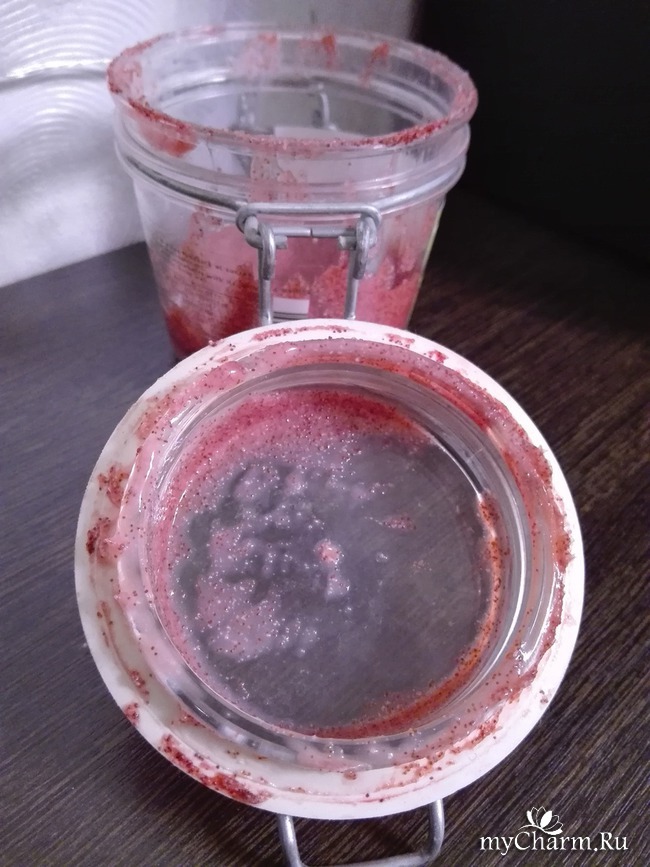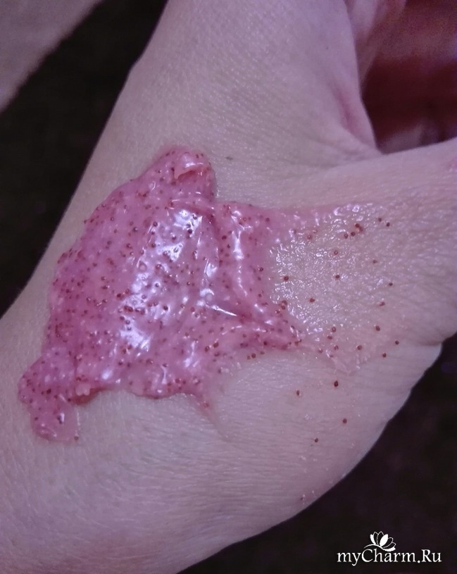 Скрабом пользоваться приятно еще и из-за чудесного запаха земляники. Такое ощущение, что открываешь банку с вареньем, а не с косметическим средством. Настолько натуральный вкусный запах. Но после применения он не остается на коже, быстро выветривается, через 10 минут уже ни чем не пахнет кожа. Конечно, жаль…