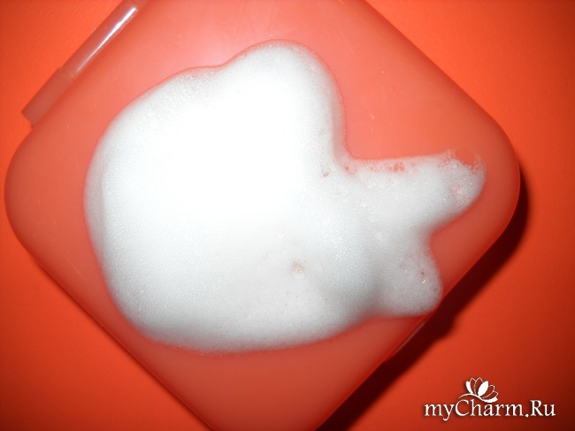 Несмотря на то, что во флакончике содержится жидкость, волшебный дозатор мгновенно преобразует ее в легчайшее облачко дивной белой пены. А использовать пенку очень просто: сначала нужно намочить руки, а затем, нажав один-два раза на помпу дозатора, набрать в руку нужное количество средства. Далее образовавшуюся пенку хорошенько растирают в ладонях и наносят легкими круговыми движениями на лицо и шею. А смывать пенку рекомендуется теплой водой. Правда, я смывала и холодной, и ничего страшного при этом не произошло. Пенится средство великолепно, а входящие в ее состав ПАВ очень нежно очищают кожу. Действие пенки настолько нежное, что ее практически не ощущаешь даже при нанесении на лицо. Да и после ее использования кожа невероятно мягкая.