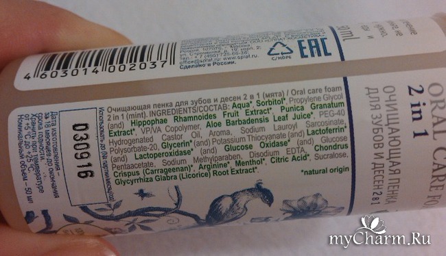Как понятно из названия пенка способствует очищению полости рта и десен, освежает дыхание.