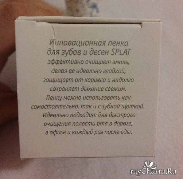 Очищающую пенку Splat мне посоветовал мой стоматолог после очередного посещения зубного кабинета. Раньше я и не подозревала, что есть такая удобная штучка. А вы пробовали такую?