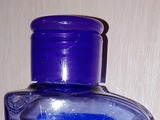 Флакон с лосьоном синего василькового цвета, с одной стороны уголок немного скошен.