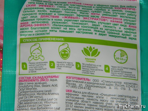 Но меня парабенами не испугаешь (тем более, их малыми дозами), поэтому я смело приступила к применению масочки.