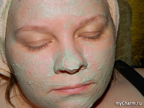 Масочку я нанесла на хорошенько очищенную кожу лица и прилегла. Вот такой забавный внешний вид получился. Дети, конечно, не преминули пошутить, мол, мама – принцесса Фиона. А я и не против, сама с ними посмеялась.