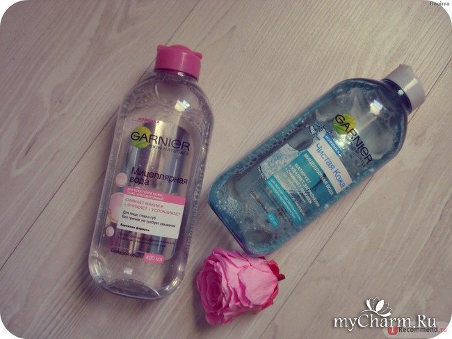 Но мне больше по душе удалять весь макияж с глаз и с лица мицеллярной водой. Мицеллярка у меня так же от Гарньер, отзывов на нее тоже очень много и в основном положительные. Пользовалась я и для любого типа лица в розовом флакончике, и для жирного и смешанного типа лица, тот который в зеленом факончике. Честно, в розовом флакончике мицеллярка мне больше понравилась.